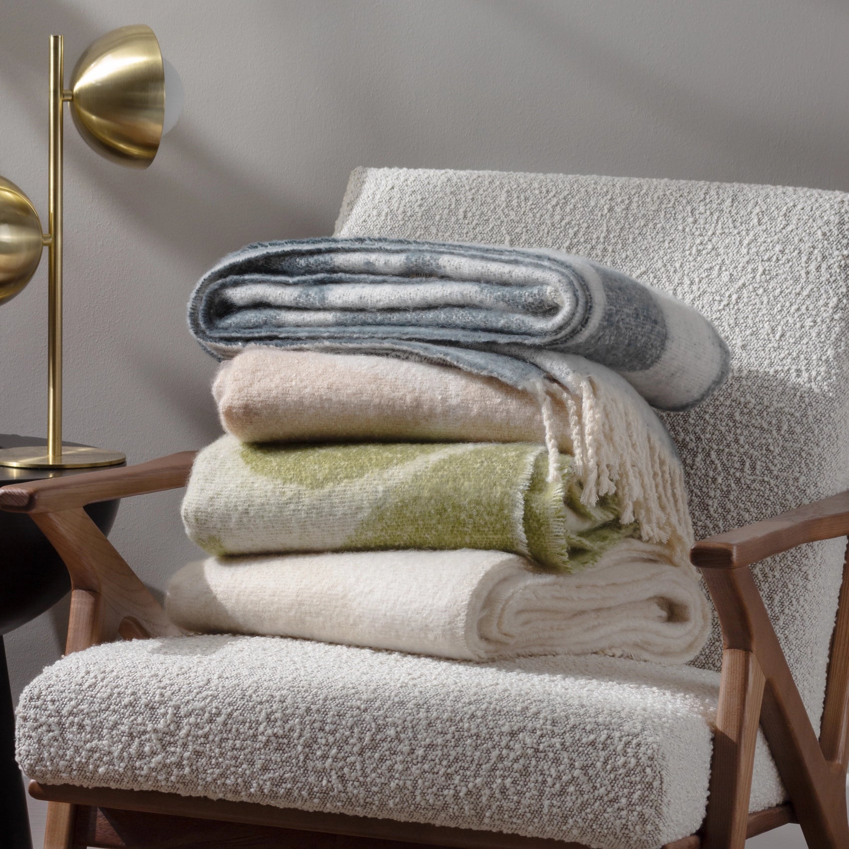 Inspired by modern and minimalist art; the Meta throw features a multitude of fluid abstract jacquard shapes, on an ultra-soft faux mohair fabric. Complete with twisted tassel edging on both sides, this design is perfect for layering within any neutral interior. Featuring an abstract geometric jacquard design, on ultra-soft faux mohair fabric. Complete with a twisted tasselled trim on both ends. This throw is super soft, yet durable.