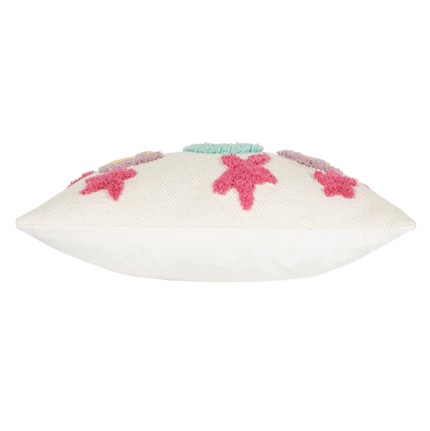 A quirky little cushion which brings life to all interior settings. Tufted cotton is sewn onto a thick woven base in the shape of stars and 3D letters which spell out the word, 'P.O.P, in happy, vibrant colours'. An ideal way to add a POP of happiness to your home.