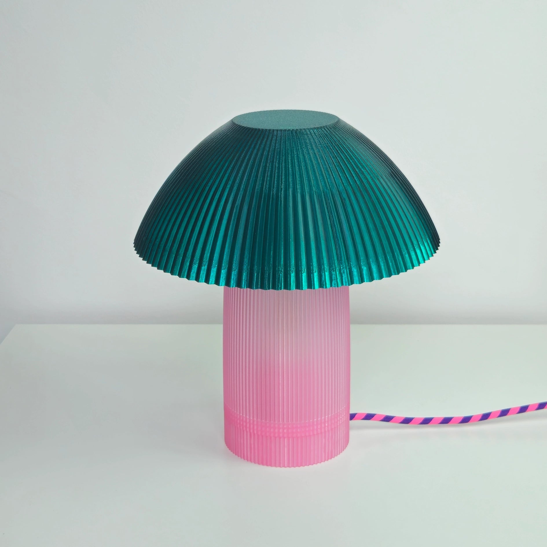 Inspired by the serene beauty of the forest, the Mushroom Table Lamp captures the organic elegance of nature’s most whimsical creations. Just like mushrooms rise from the earth with their unique forms, this lamp brings a playful yet serene energy to your home. Its design evokes the feeling of wandering through a magical forest, where mushrooms softly glow beneath the canopy, guiding your way through the twilight. Made from eco-conscious bio-sourced materials, this lamp is not only a tribute to nature but a sustainable addition to your home. The organic shape allows for diffused light, creating a cozy ambiance. The craftsmanship showcases the power of technology and design to bring natural beauty into a new form, proving that sustainability and creativity can go hand in hand. Available in two exquisite color palettes: Rose & Green – A warm and earthy duo, evoking lush gardens kissed by the golden hour.
